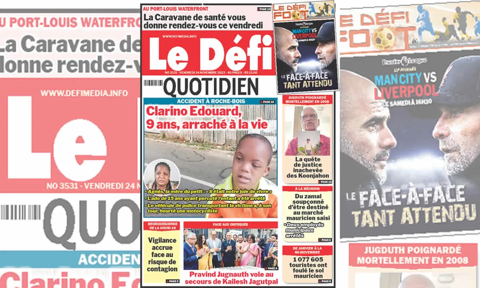 Voici la une du Défi Quotidien de ce Vendredi 24 Novembre 2023