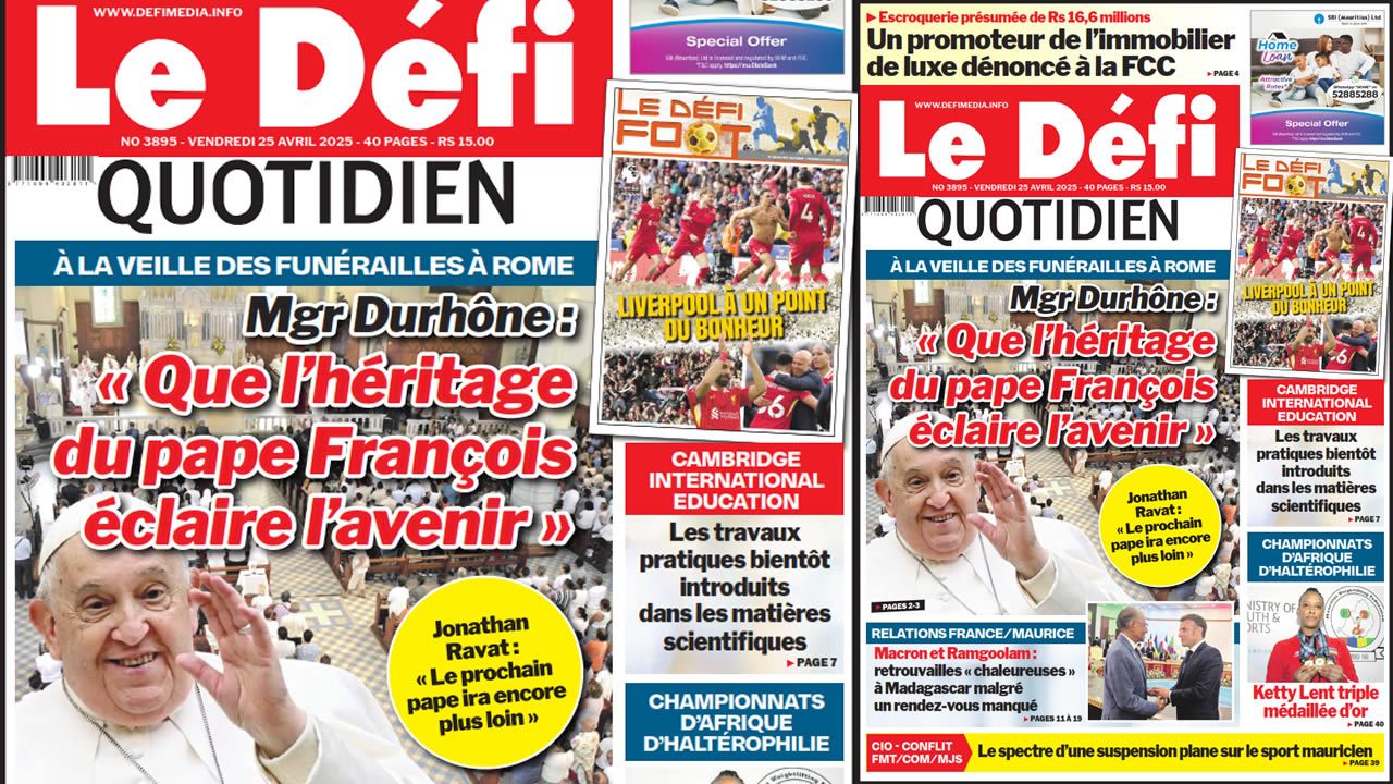 ? Voici la Une du Défi Quotidien. Le journal est en vente à Rs 15 l'exemplaire aux endroits habituels (supermarchés, boutiques, tabagies, superettes). Bonne lecture !