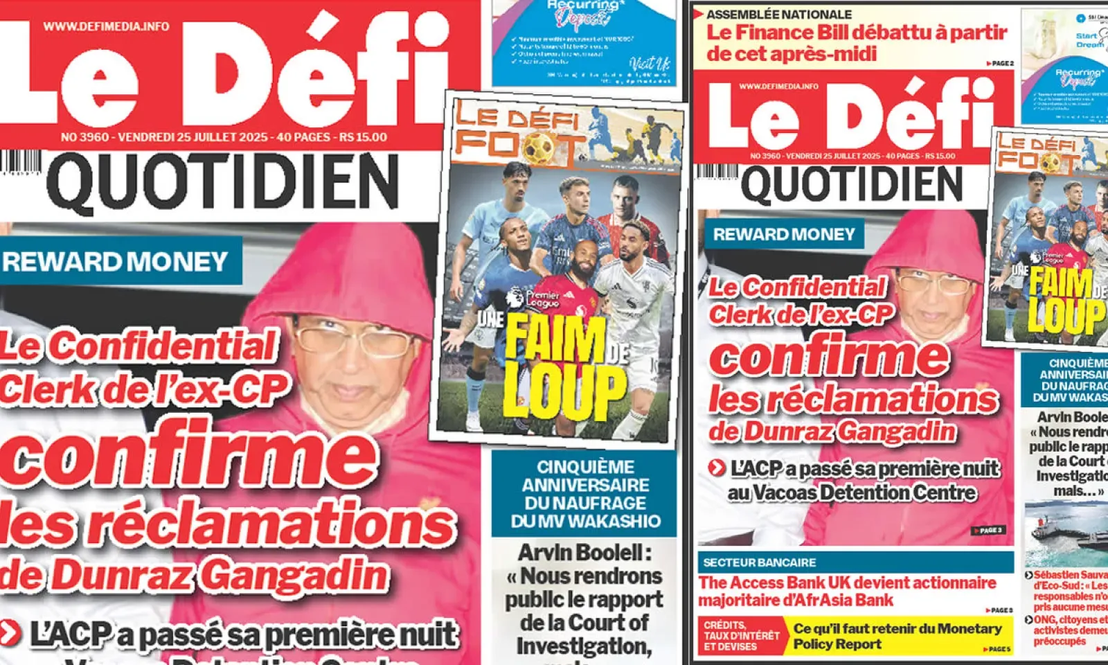 ? Voici la Une du Défi Quotidien. Le journal est en vente à Rs 15 l'exemplaire aux endroits habituels (supermarchés, boutiques, tabagies, superettes). Bonne lecture !