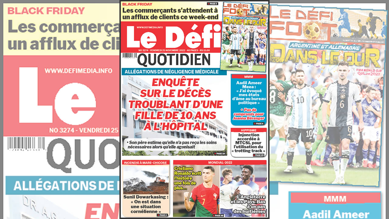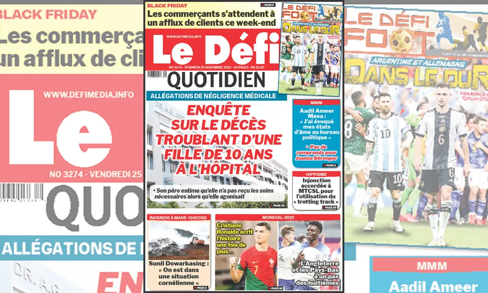Voici la une du Défi Quotidien de ce vendredi 25 Novembre 2022