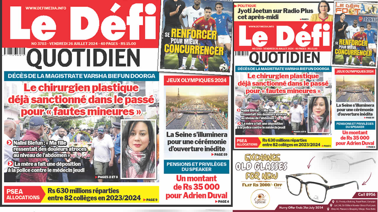 ? Voici la Une du Défi Quotidien. Le journal est en vente à Rs 15 l'exemplaire aux endroits habituels (supermarchés, boutiques, tabagies, superettes). Bonne lecture !