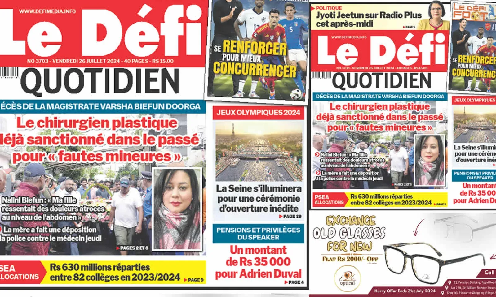 Voici la une du Défi Quotidien de ce Vendredi 26 Juillet 2024
