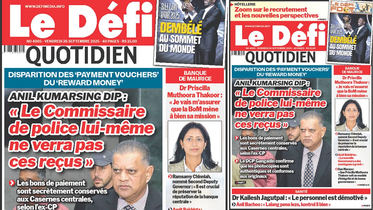 ? Voici la Une du Défi Quotidien. Le journal est en vente à Rs 15 l'exemplaire aux endroits habituels (supermarchés, boutiques, tabagies, superettes). Bonne lecture !