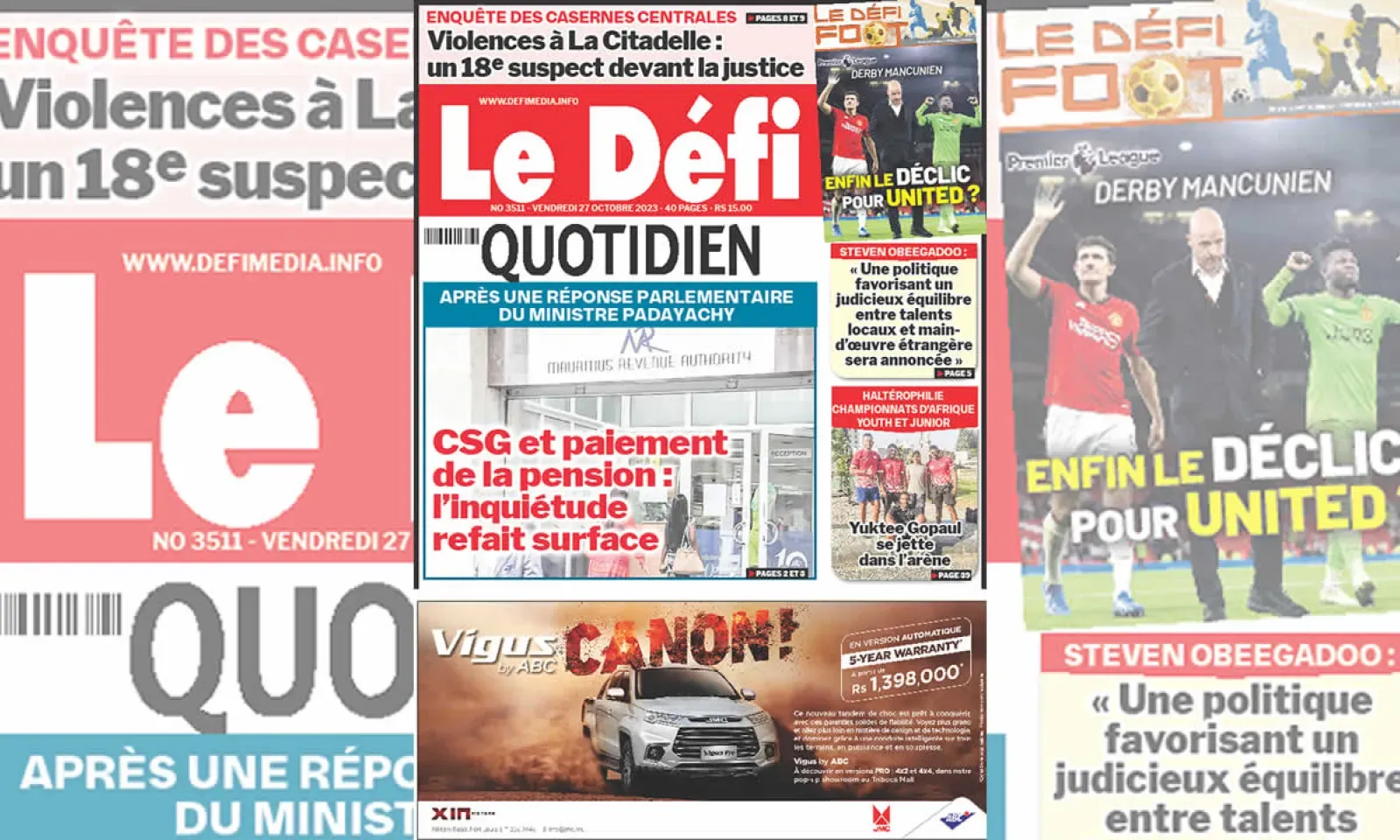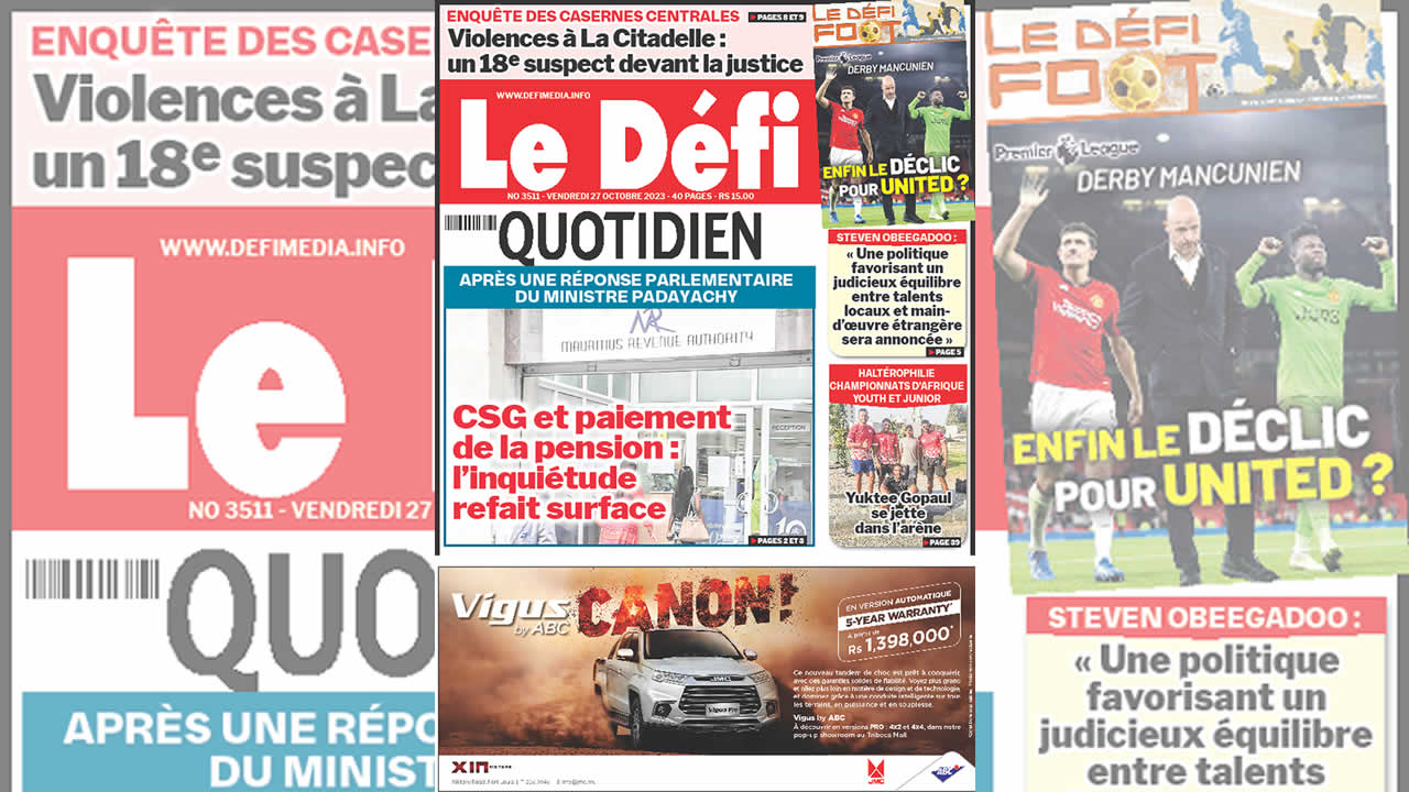 ? Voici la Une du Défi Quotidien. Le journal est en vente à Rs 15 l'exemplaire aux endroits habituels (supermarchés, boutiques, tabagies, superettes). Bonne lecture !