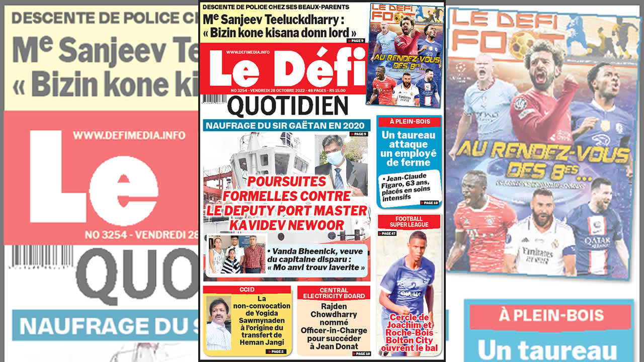 ? Voici la Une du Défi Quotidien. Le journal est en vente à Rs 15 l'exemplaire aux endroits habituels (supermarchés, boutiques, tabagies, superettes). Bonne lecture !