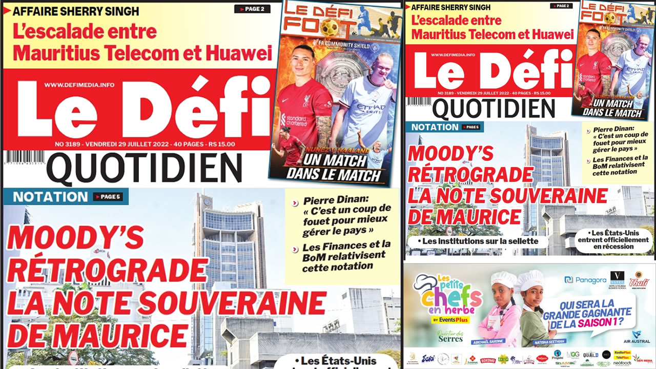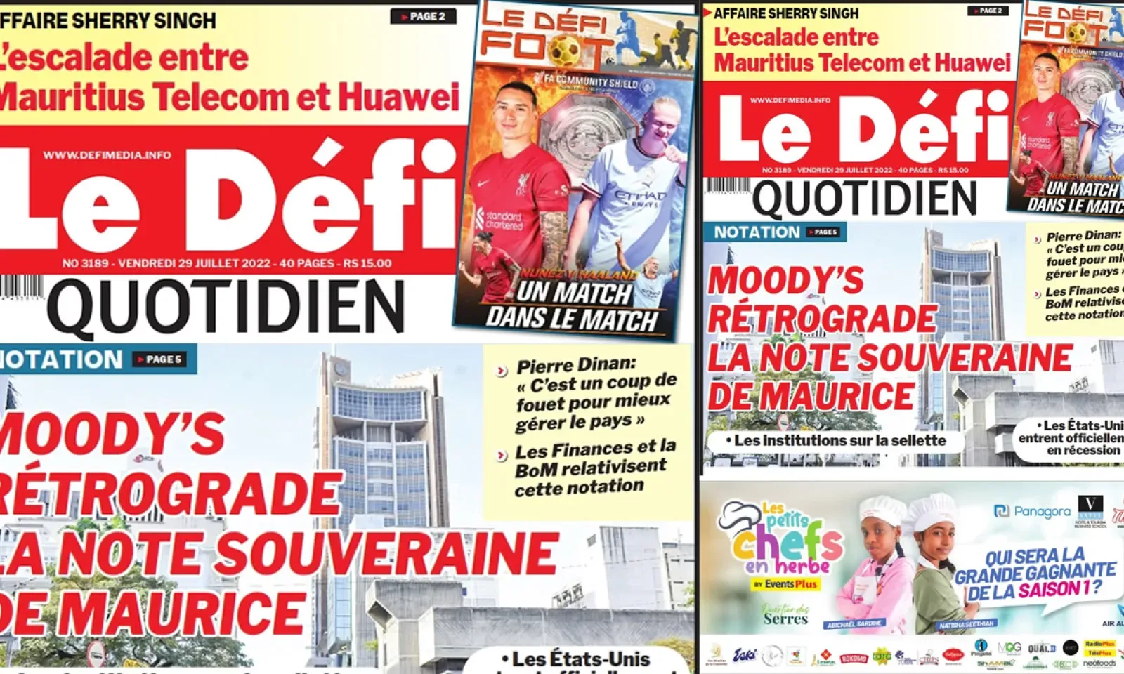 ? Voici la Une du Défi Quotidien. Le journal est en vente à Rs 15 l'exemplaire aux endroits habituels (supermarchés, boutiques, tabagies, superettes). Bonne lecture !