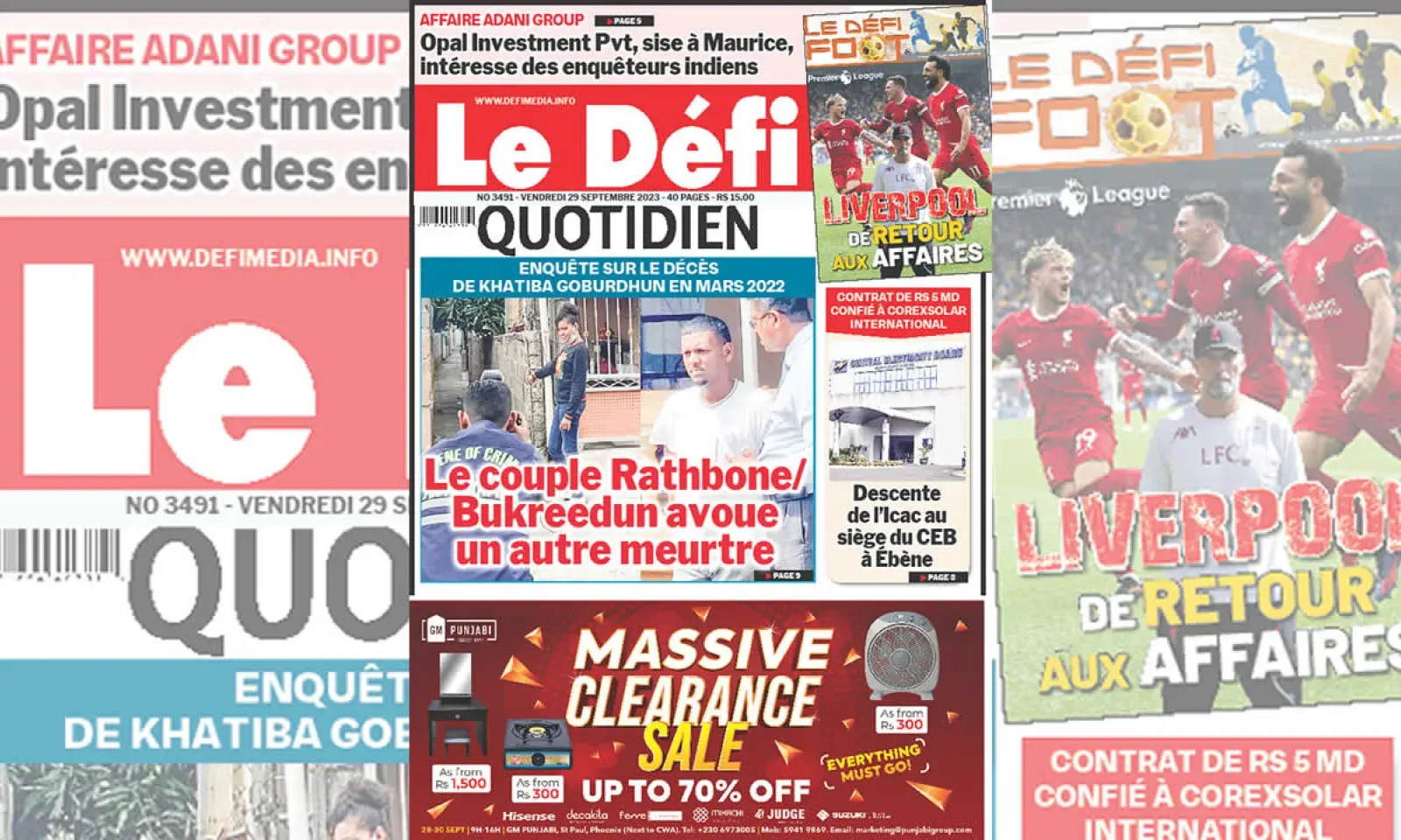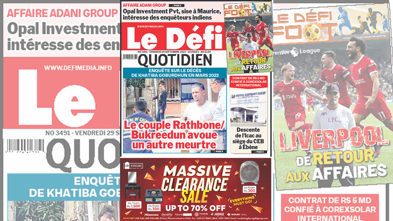 ? Voici la Une du Défi Quotidien. Le journal est en vente à Rs 15 l'exemplaire aux endroits habituels (supermarchés, boutiques, tabagies, superettes). Bonne lecture !