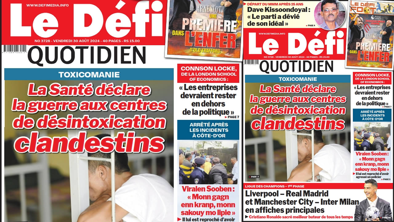 ? Voici la Une du Défi Quotidien. Le journal est en vente à Rs 15 l'exemplaire aux endroits habituels (supermarchés, boutiques, tabagies, superettes). Bonne lecture !