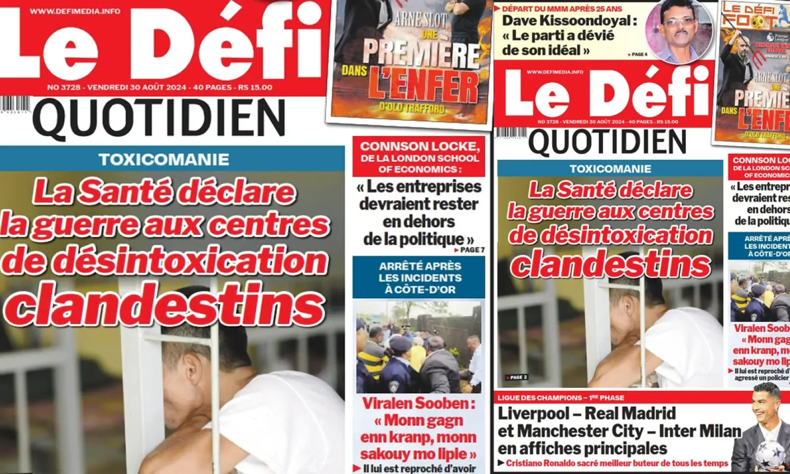 Voici la une du Défi Quotidien de ce Vendredi 30 Août 2024