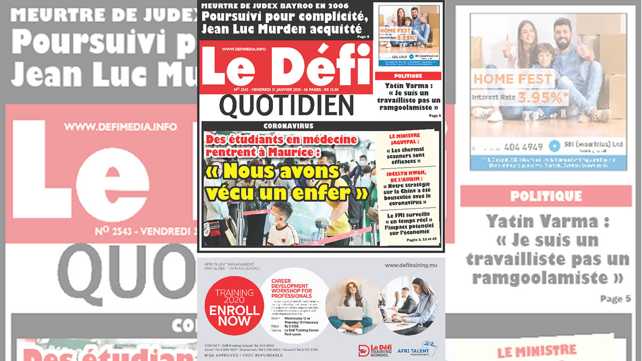 C’est aux alentours de 14 heures que le dernier vol en provenance de Shanghai a atterri à l’aéroport de Plaisance. L’appareil avait à son bord « une centaine » de passagers, dont principalement des étudiants en médecine, de trois universités de Chine. Cinq d’entre eux ont accepté de raconter leur expérience au Défi Quotidien. Le ministre de la Santé, le Dr Kailesh Jagutpal, était à l’aéroport Sir Seewoosagur Ramgoolam à Plaisance et a promis que « les recommandations de l’Organisation mondiale de la santé seront suivies à la lettre ».