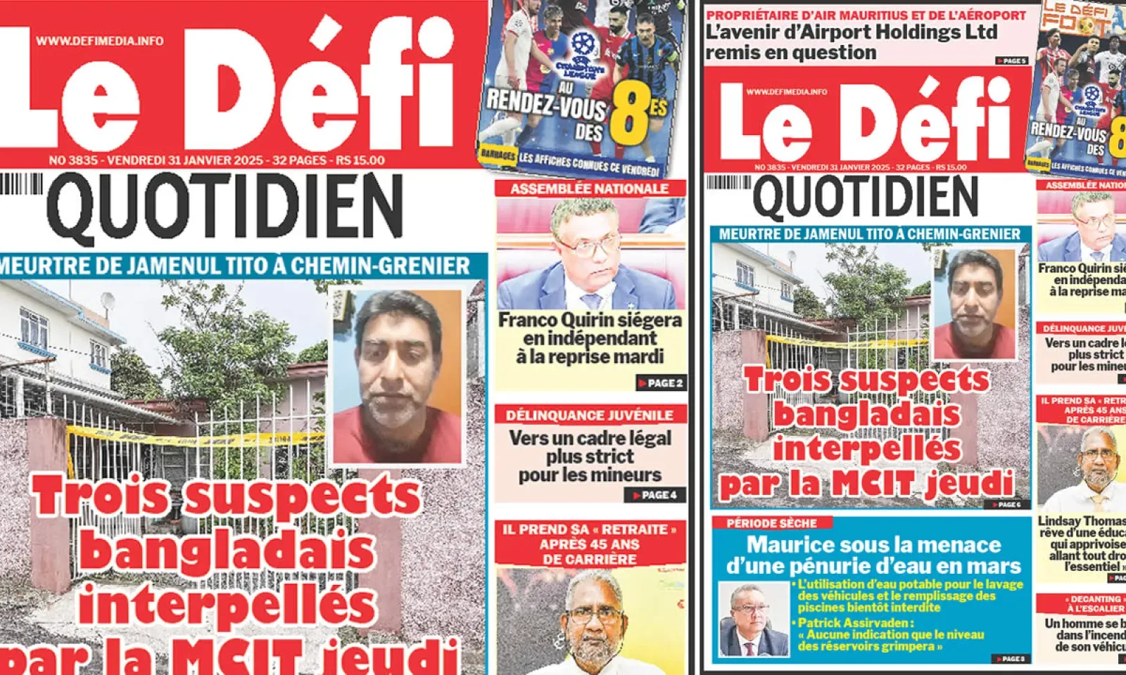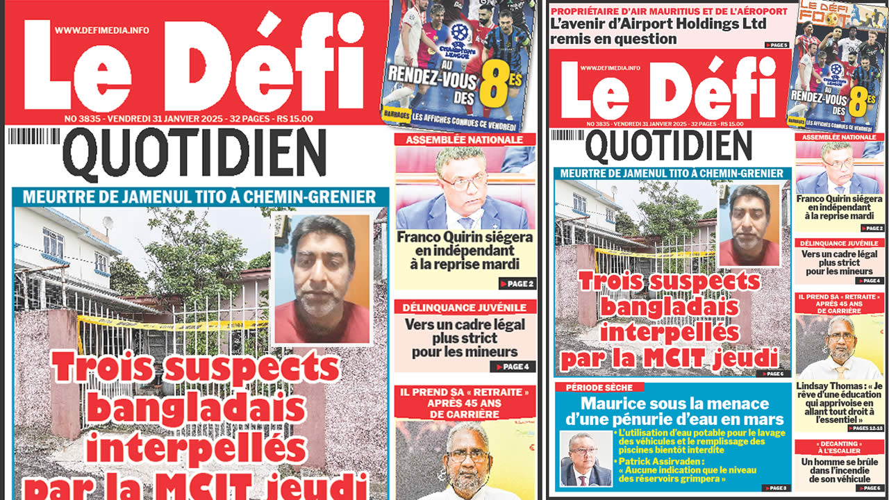 ? Voici la Une du Défi Quotidien. Le journal est en vente à Rs 15 l'exemplaire aux endroits habituels (supermarchés, boutiques, tabagies, superettes). Bonne lecture !