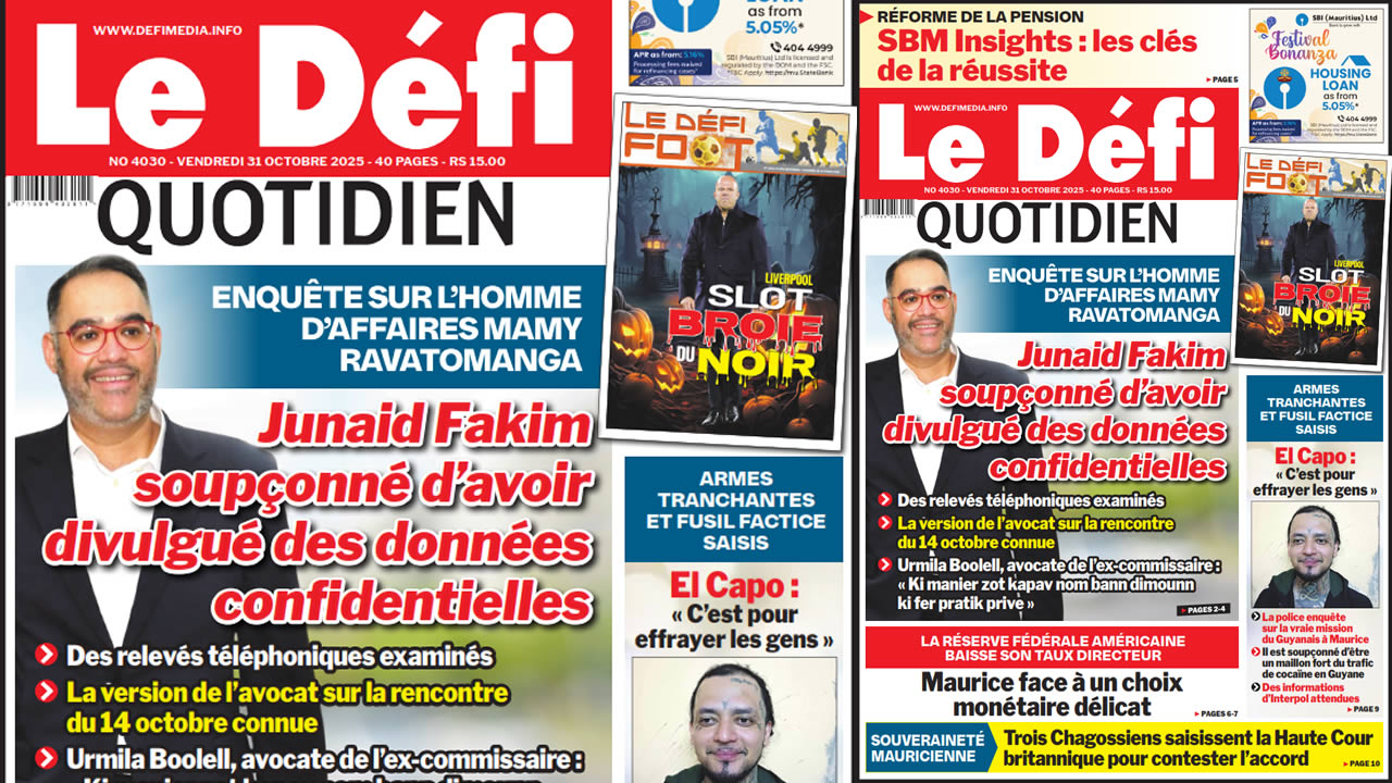 ? Voici la Une du Défi Quotidien. Le journal est en vente à Rs 15 l'exemplaire aux endroits habituels (supermarchés, boutiques, tabagies, superettes). Bonne lecture !