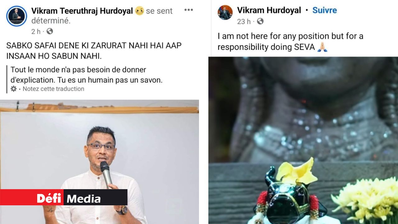 Voici les deux derniers posts publiés par Vikram Hurdoyal sur sa page Facebook au cours des dernières 24 heures. Il a été révoqué de son poste de ministre de l’Agro-industrie et de la Sécurité alimentaire ce soir. Cette information a été communiquée par le Government Information Service (GIS). Nous attendons toujours la raison officielle de sa révocation.