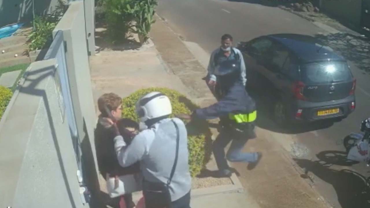 Sur la vidéo de surveillance, on voit la voiture qui s’arrête en face de la porte d’entrée. La victime sort la première, suivie du chauffeur. Elle marche vers le portail, portant son sac. Elle compose le code du portail. C’est à ce moment-là, soit à 13 h 35 précises qu’une motocyclette s’arrête derrière la voiture. Deux hommes portant des vestes et des casques intégraux s’approchent de Jacqueline Elie.
