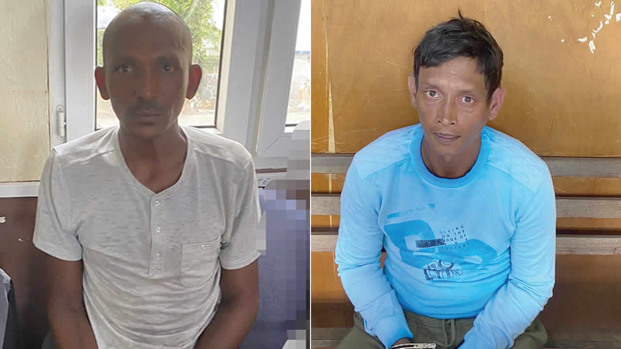 Quelques heures après le vol, la DCIU et la Criminal Investigation Division de Curepipe ont appréhendé Komal Mangar, 36 ans, de Cité Anoska, et Joseph Gevanny Grivon, 44 ans, de Roche-Bois, à la gare routière Jan Palach Nord, à Curepipe, le 29 novembre. Ils étaient dans un autobus qui devait les ramener à Port-Louis. Les vêtements volés ont été retrouvés en leur possession.
