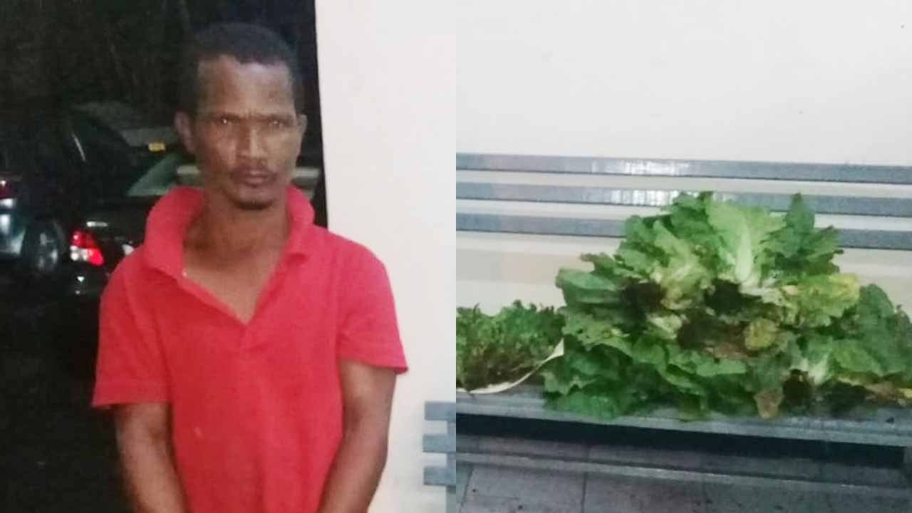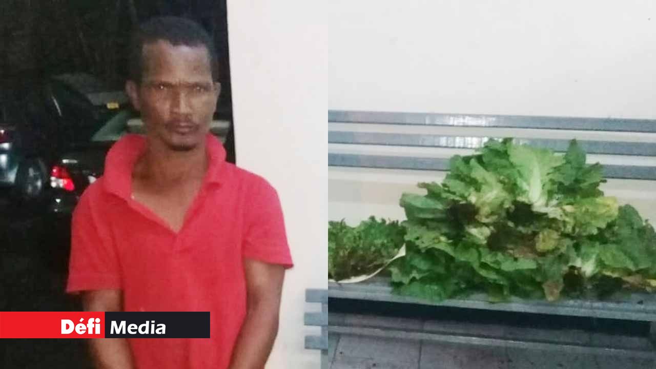 Le suspect a été conduit au poste. Les policiers ont constaté qu'il avait au total deux livres de 'cotomili' et neuf grosses bottes de 'brèdes de Chine'. La valeur est estimée à Rs 1500. Il a été arrêté et place en détention. L’enquête se poursuit.