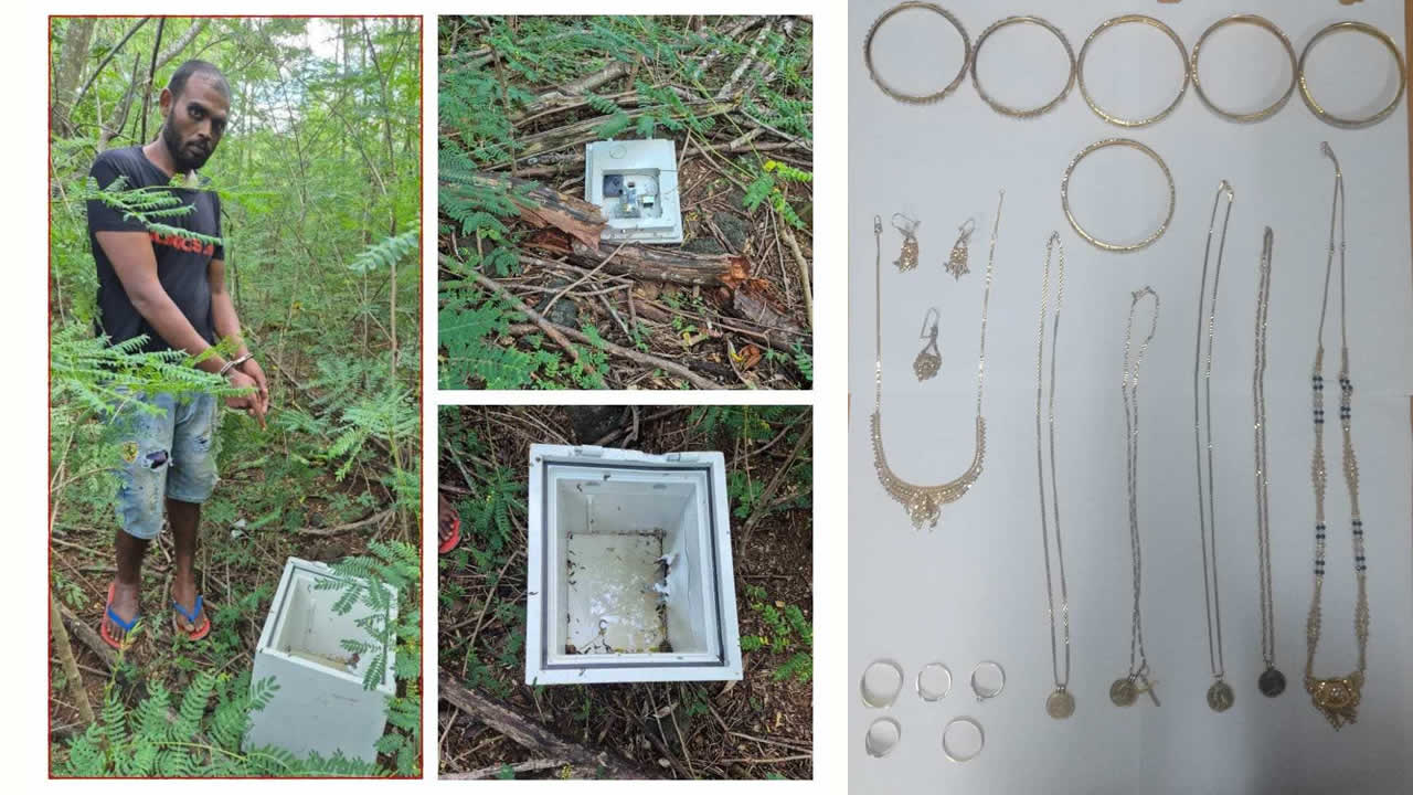 Un vol hors du commun a pu être résolu à Triolet : des bijoux d’une valeur de Rs 1,2 million ont été retrouvés cachés sous du macadam, à l’arrière d’une maison. Le receleur présumé, un entrepreneur de la région, a conduit les enquêteurs à la cachette.