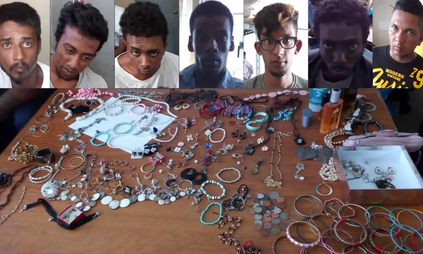 Les sept suspects ont été arrêtés ce mardi matin 6 novembre par la brigade criminelle (CID) de Goodlands. Ils sont Abde Mohammad Shehriyaaz, un coiffeur de Goodlands, âgé de 21 ans ; Marie Kenny Marie, un pêcheur de Grand-Gaube, âgé de 24 ans ; Jean Daren Madoo, un maçon de Grand-Gaube, âgé de 21 ans ; Holy Herley Nicolas, un habitant de Grand-Gaube, âgé de 31 ans ; Alexandre khan Cango, un maçon de Goodlands, âgé de 21 ans ; Fayez khan Peerally,un habitant de Goodlands, âgé de 27 ans et Jean Daniel Kersley, un pêcheur de Grand-Gaube, âgé de 38 ans.