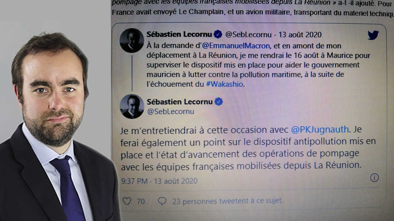 Sébastien Lecornu, ministre des Outre-mer, sera à Maurice ce dimanche 16 août pour superviser le dispositif de soutien mis en place par la France pour aider le gouvernement mauricien à lutter contre la pollution de ses eaux maritimes à la suite de l’échouement du Wakashio. C’est ce qu’il a annoncé lui-même sur son compte Twitter, jeudi 13 août.
