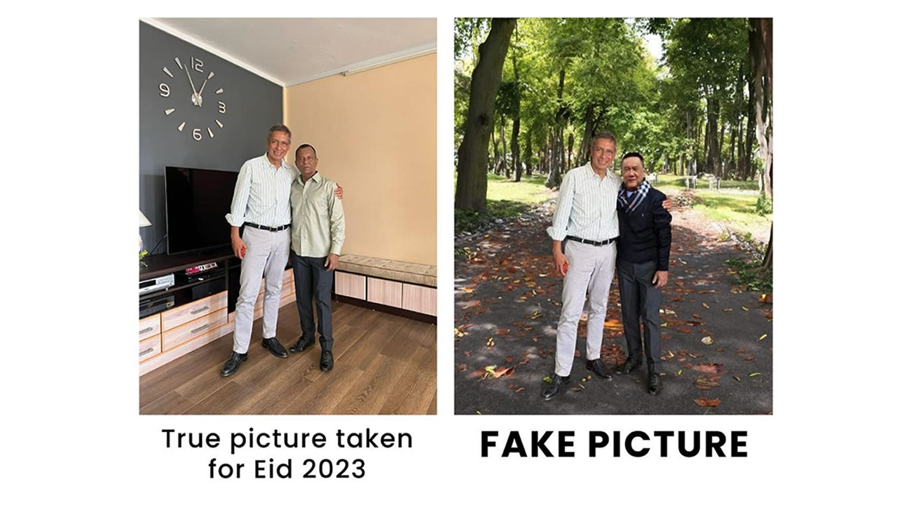 Dans une publication sur sa page Facebook ce vendredi, Xavier-Luc Duval a partagé deux photos côte à côte : l'une, authentique, le montre avec un homme lors de l’Eid-ul-Fitr de l’année dernière, et l'autre, une photo falsifiée, le montre aux côtés de Jean Michel Lee Shim.