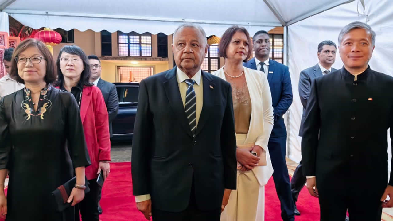 À l’ occasion du 74e anniversaire de la fondation de la République populaire de Chine, l’ambassade de Chine à Maurice a organisé une réception. Cet événement s’est tenu au siège de l’ambassade à Belle-Rose en présence du Premier ministre, Pravind Jugnauth, du ministre des Affaires étrangères, Maneesh Gobin, de ministres, de députés du gouvernement et de l’opposition, du vice-président de la République, Eddy Boissézon, du Speaker de l’Assemblée nationale, Sooroojdev Phokeer, du leader du PTr, Navin Ramgoolam, et d’autres personnalités. Ils ont été accueillis par Zhu Liying, ambassadeur de la République Populaire Chine à Maurice.